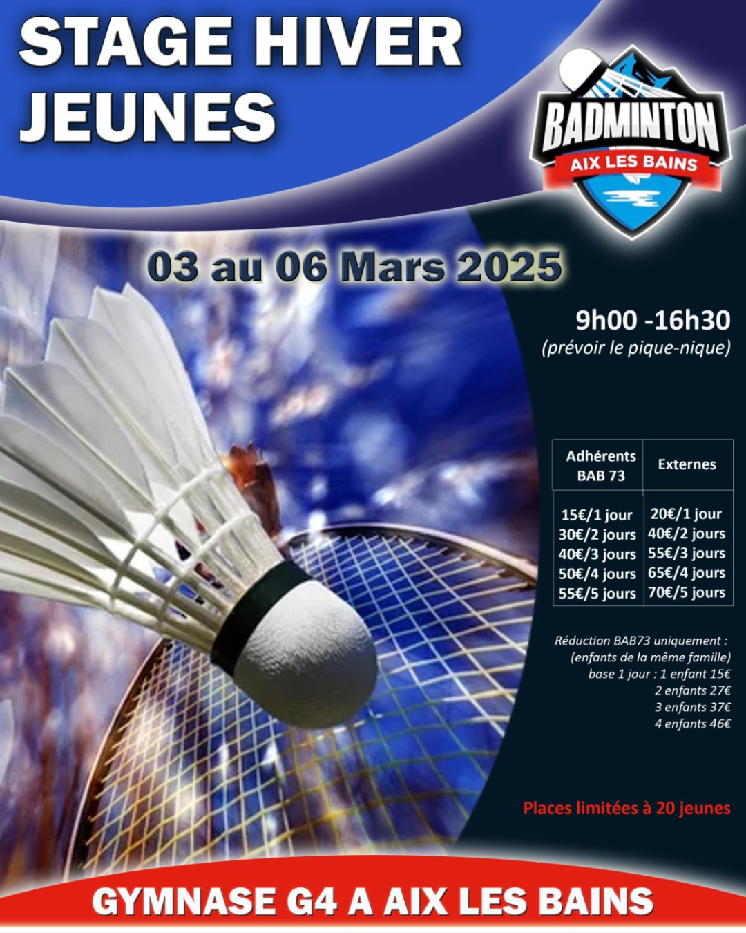 Inscription possible par email (entraineur@bab73.fr) ou directement sur EBAD !