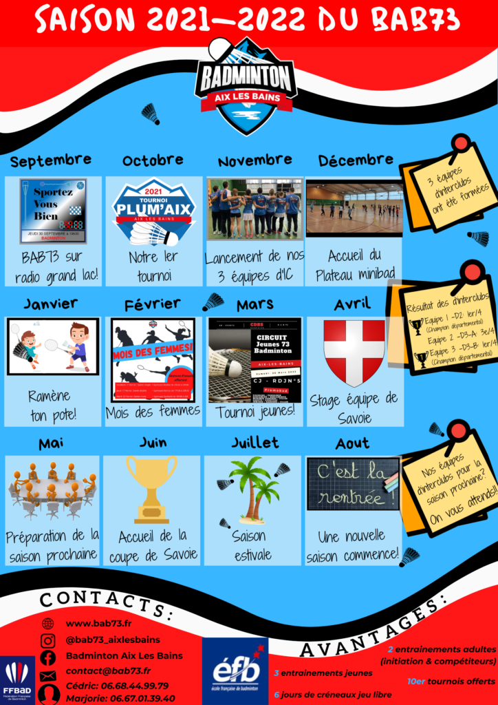 Le club de Badminton d’Aix-les-Bains est une association sportive qui existe depuis plus de 30 ans sur le bassin Aixois !