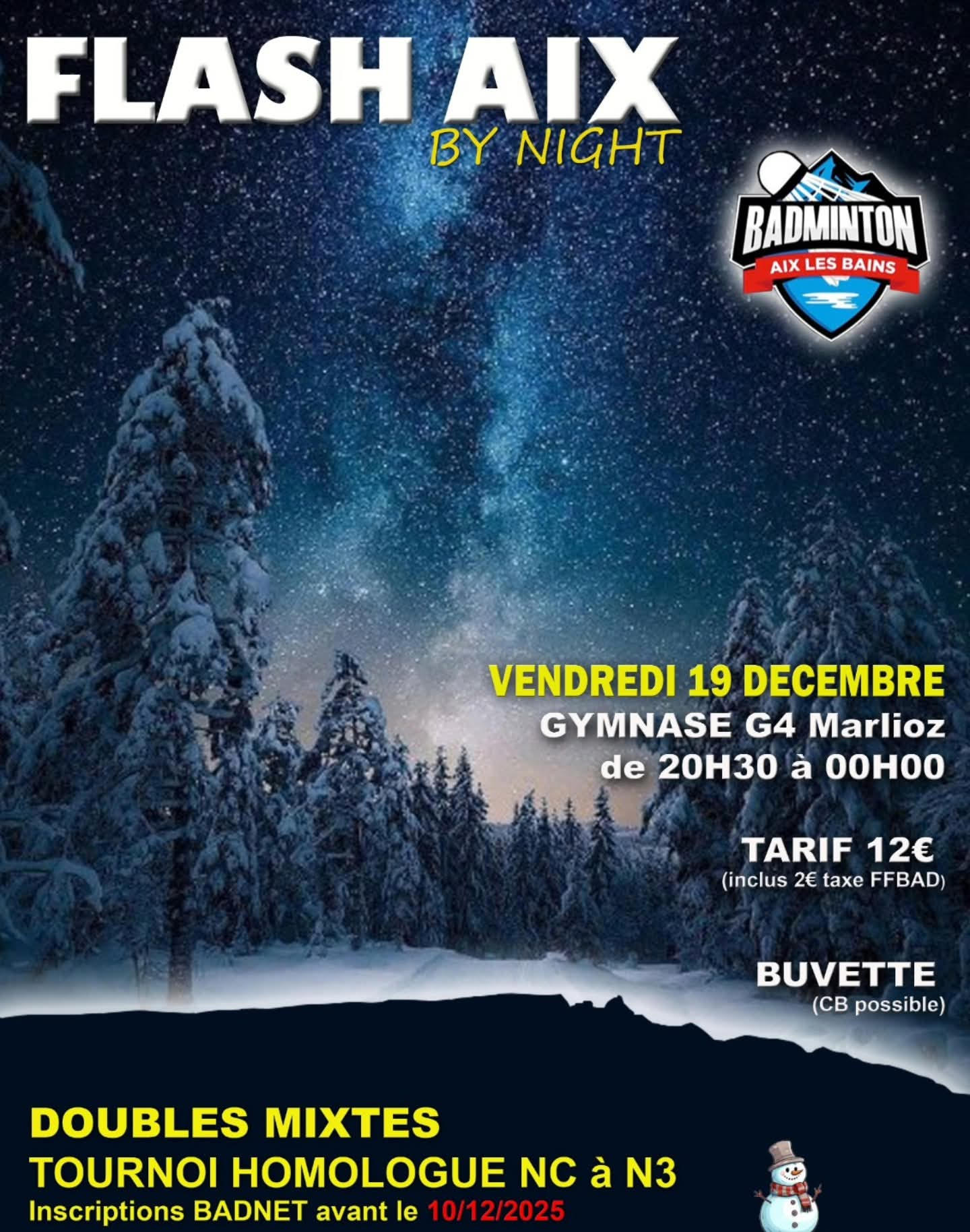 Notre premier tournoi soirée de la saison, avec les doubles mixtes ! ATTENTION : Début des matchs à 21h00 pour une fin de tournoi vers minuit