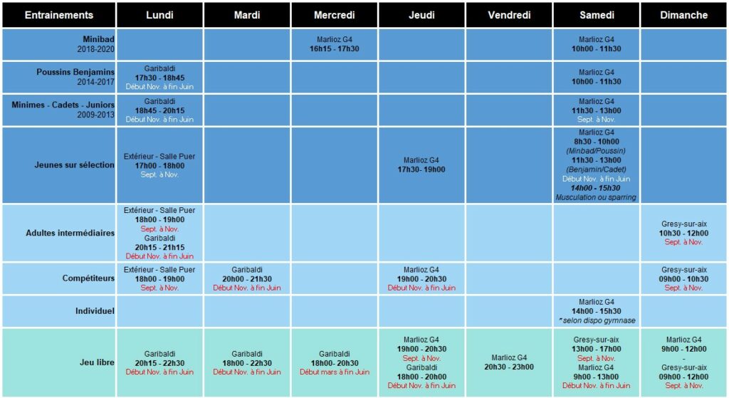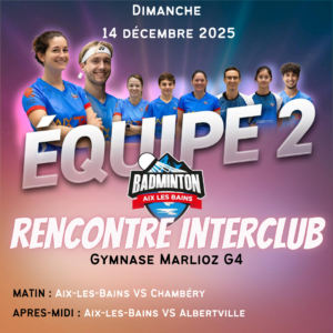 14 décembre à 9h00 - 17h00 à Gymnase Marlioz G4Rencontre interclub – Créneau jeu libre fermé à 20h (équipe 6)
